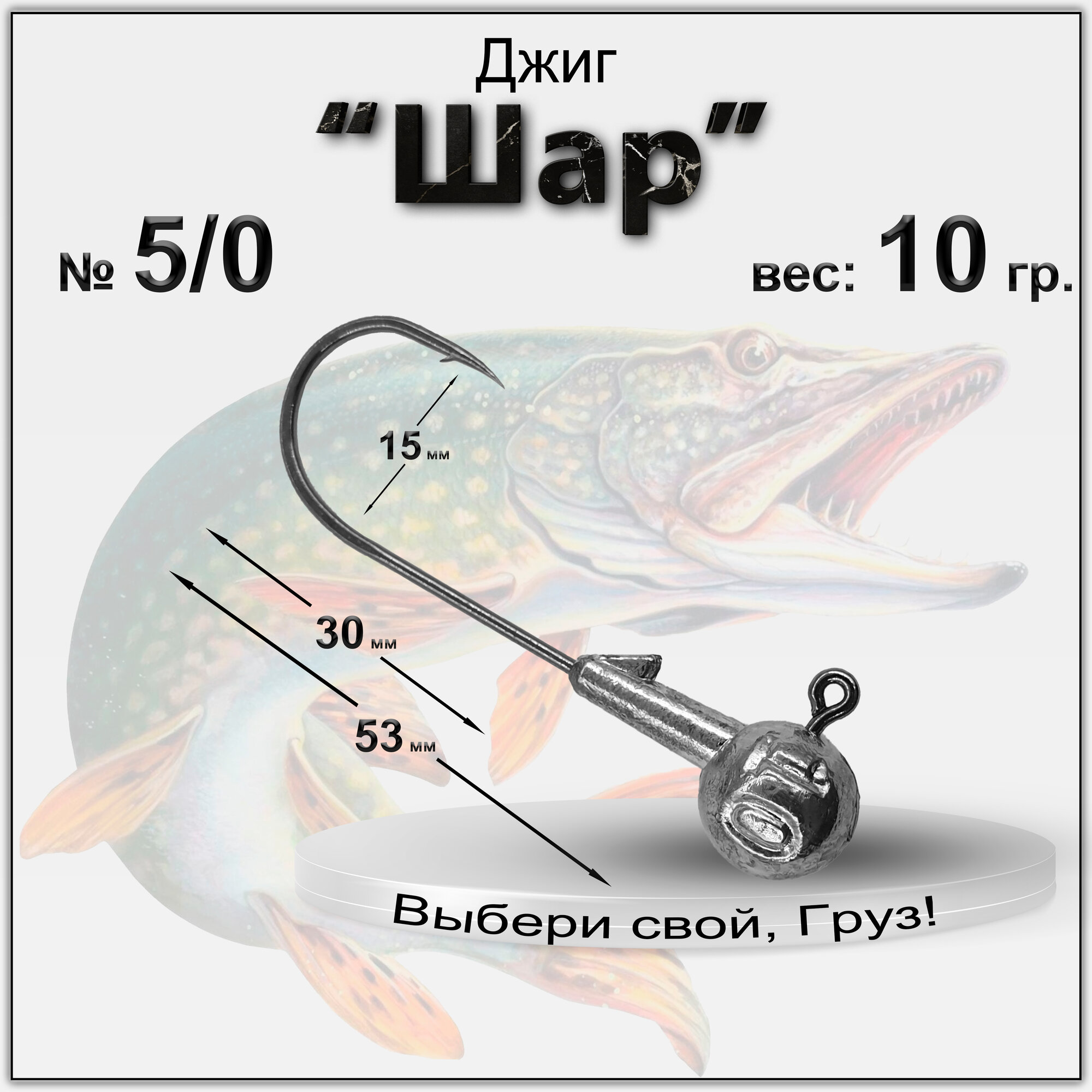 Джиг-головка "Шар" 10 гр. (крючок № 5/0), (в уп. 5 шт.) интересное: