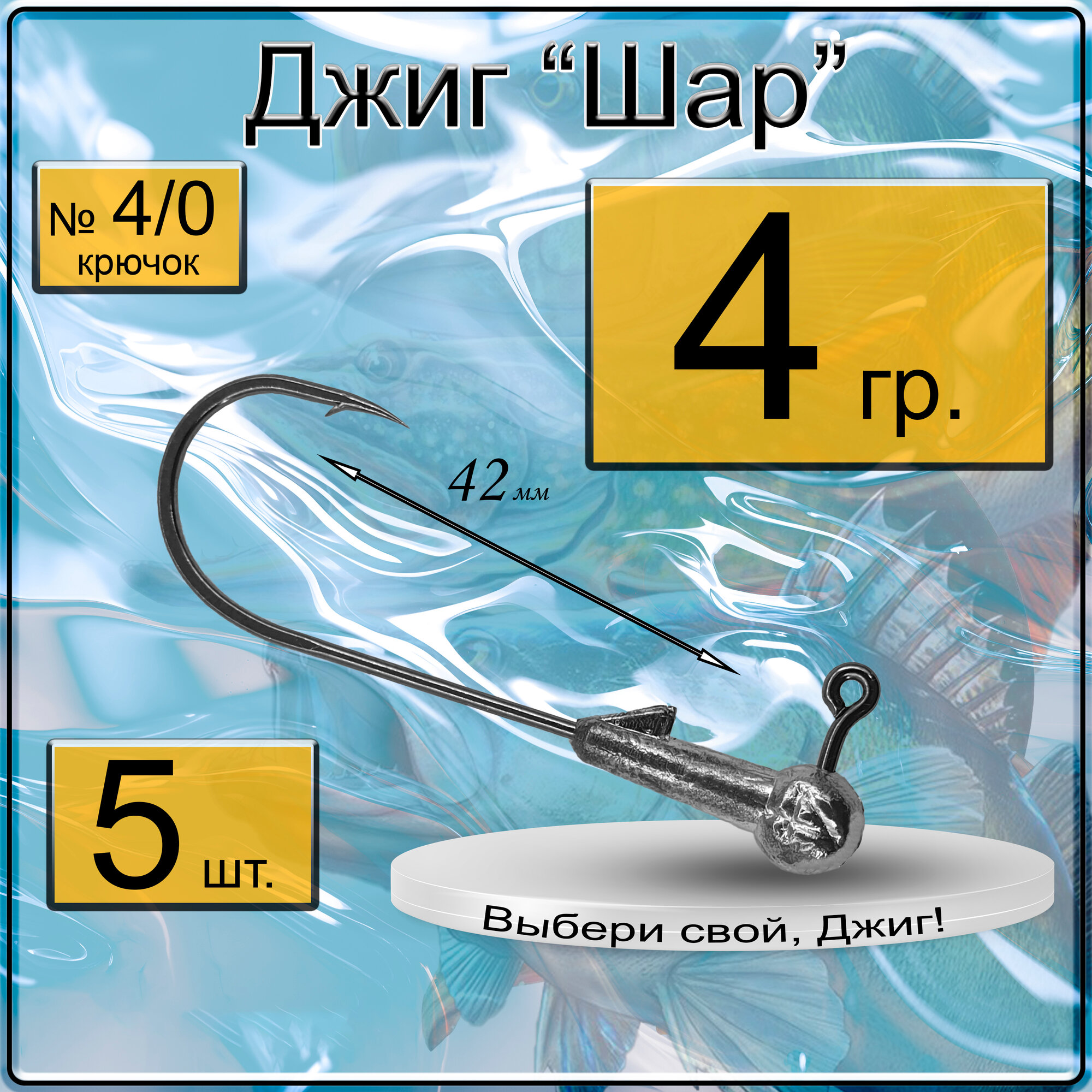 Купить Джиг-головка "Шар" 4 гр. (крючок № 4/0), (в уп. 5 шт.)