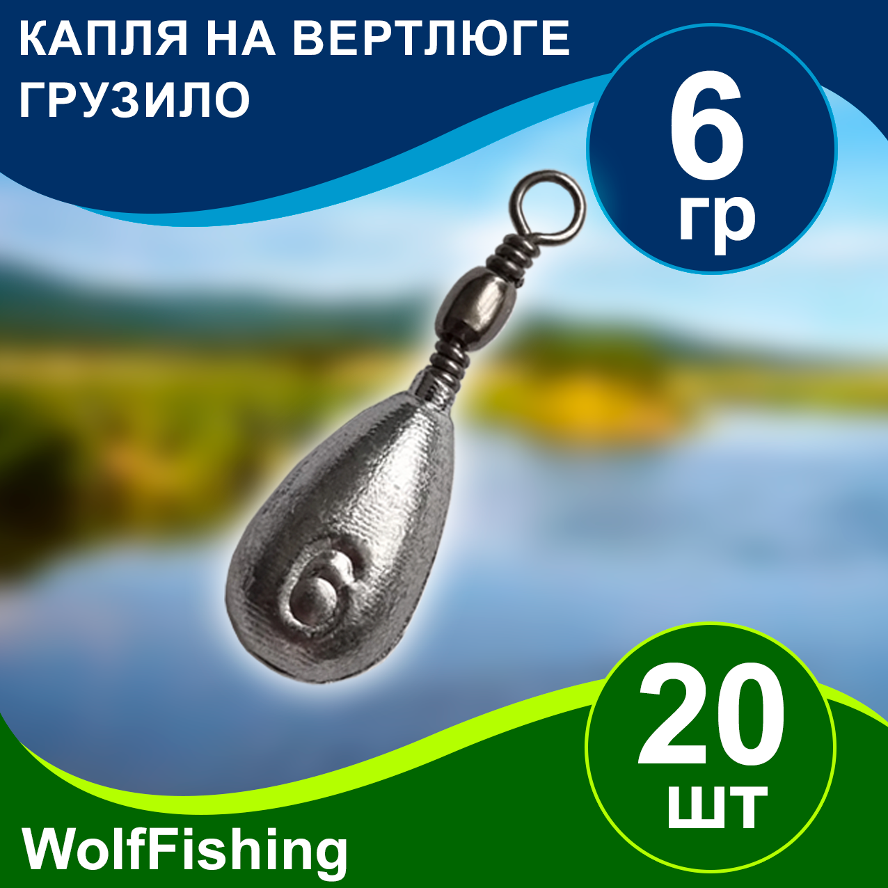 Купить Груз рыболовный "Капля на вертлюге" вес 6гр 20шт, дропшот, отводной поводок, джигриг, убийца карася