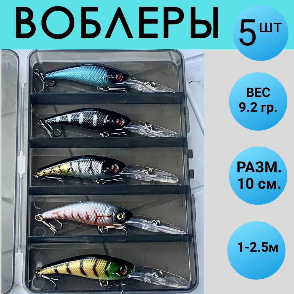 СохранитьВоблер для рыбалки на щуку 5 шт, 10 см 9.2 грамм, приманки рыболовные на судака и окуня, снасти для спиннинга в коробочке интересное: