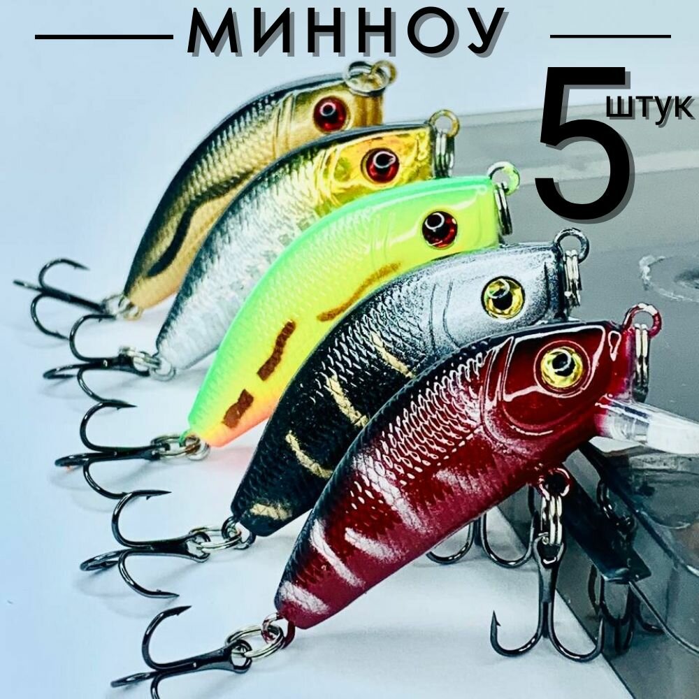 Воблер для рыбалки на щуку 5 шт, минноу 9 см 8 грамм, приманки рыболовные на судака и окуня, снасти для спиннинга в коробочке