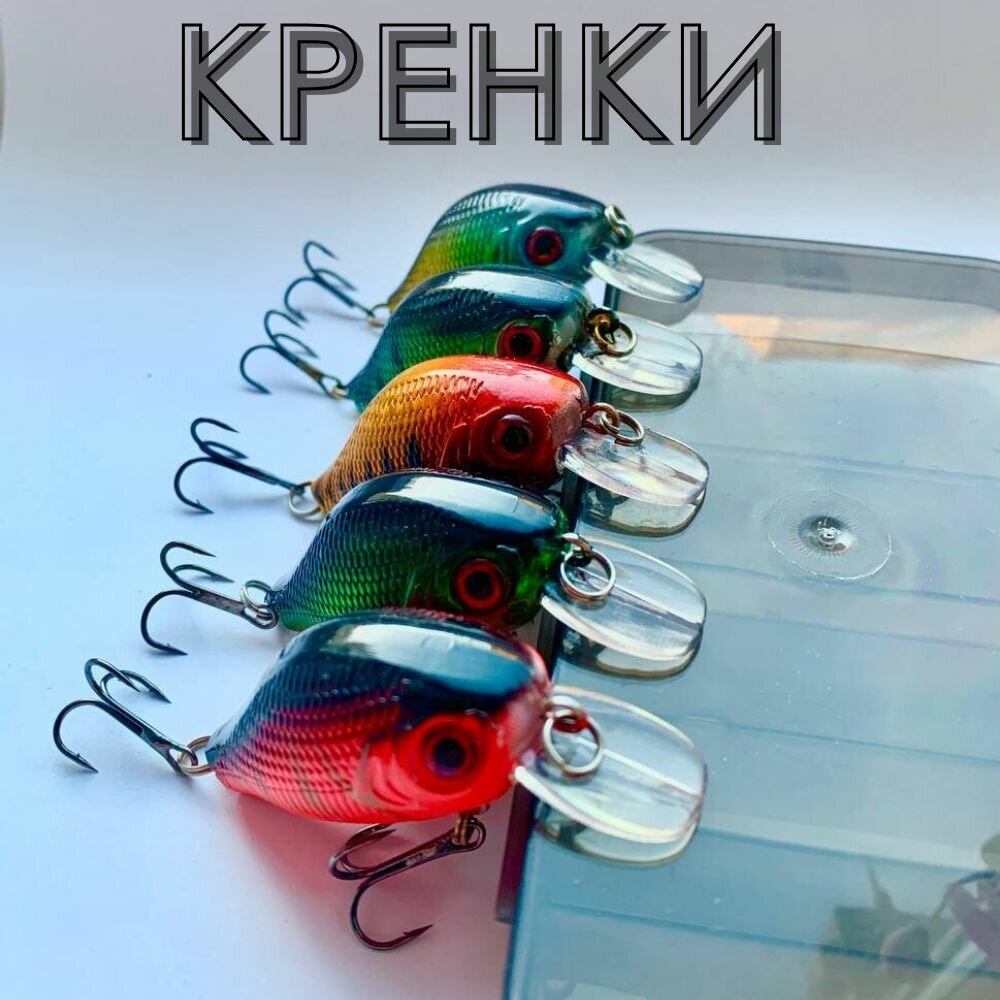 Воблер для рыбалки на щуку 5 шт, кренк 4.5см 3.5 грамма приманки рыболовные на судака и окуня, снасти для спиннинга в коробочке