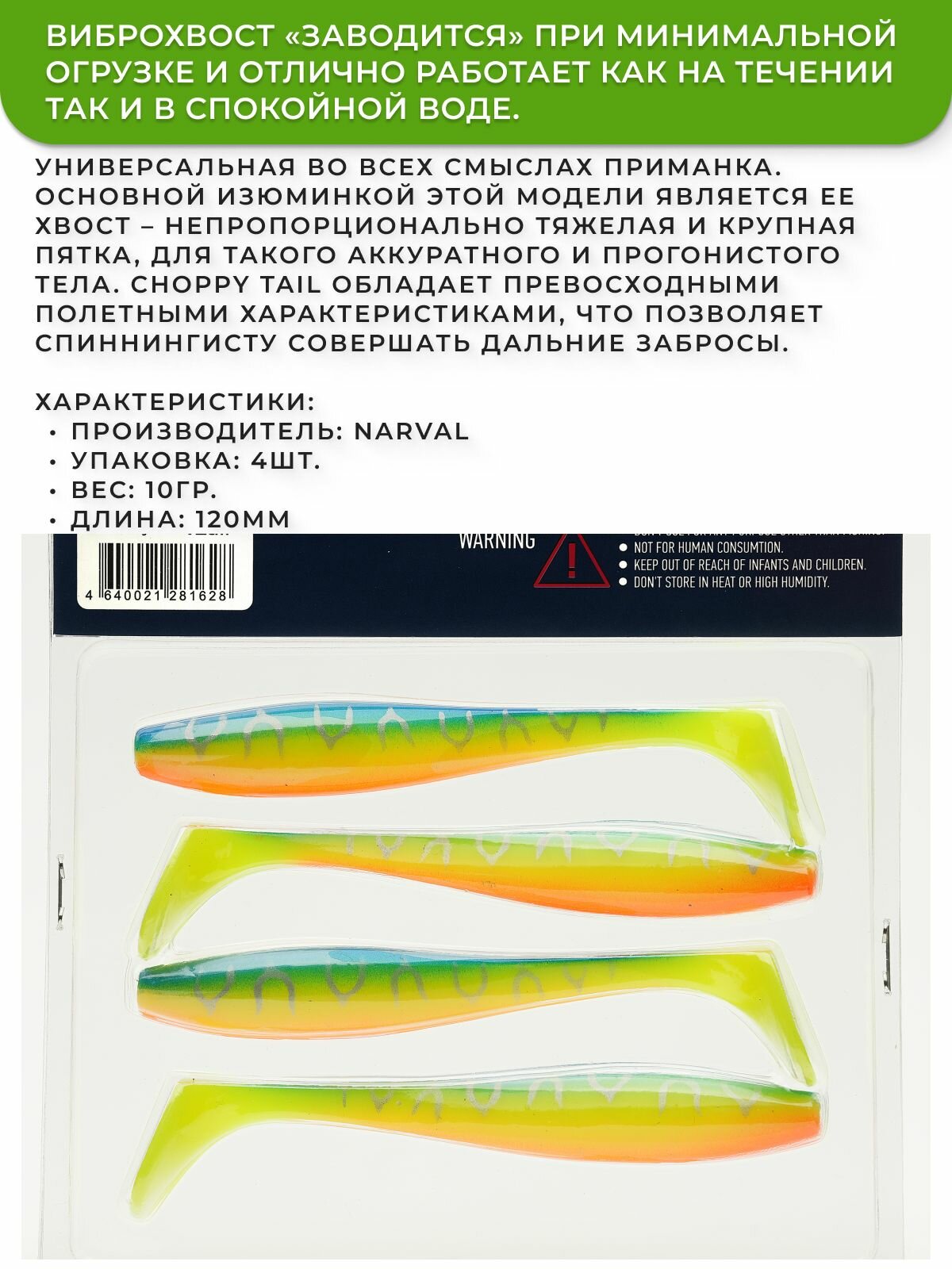 Виброхвосты Narval Choppy Tail 12см (4шт) цвет 045