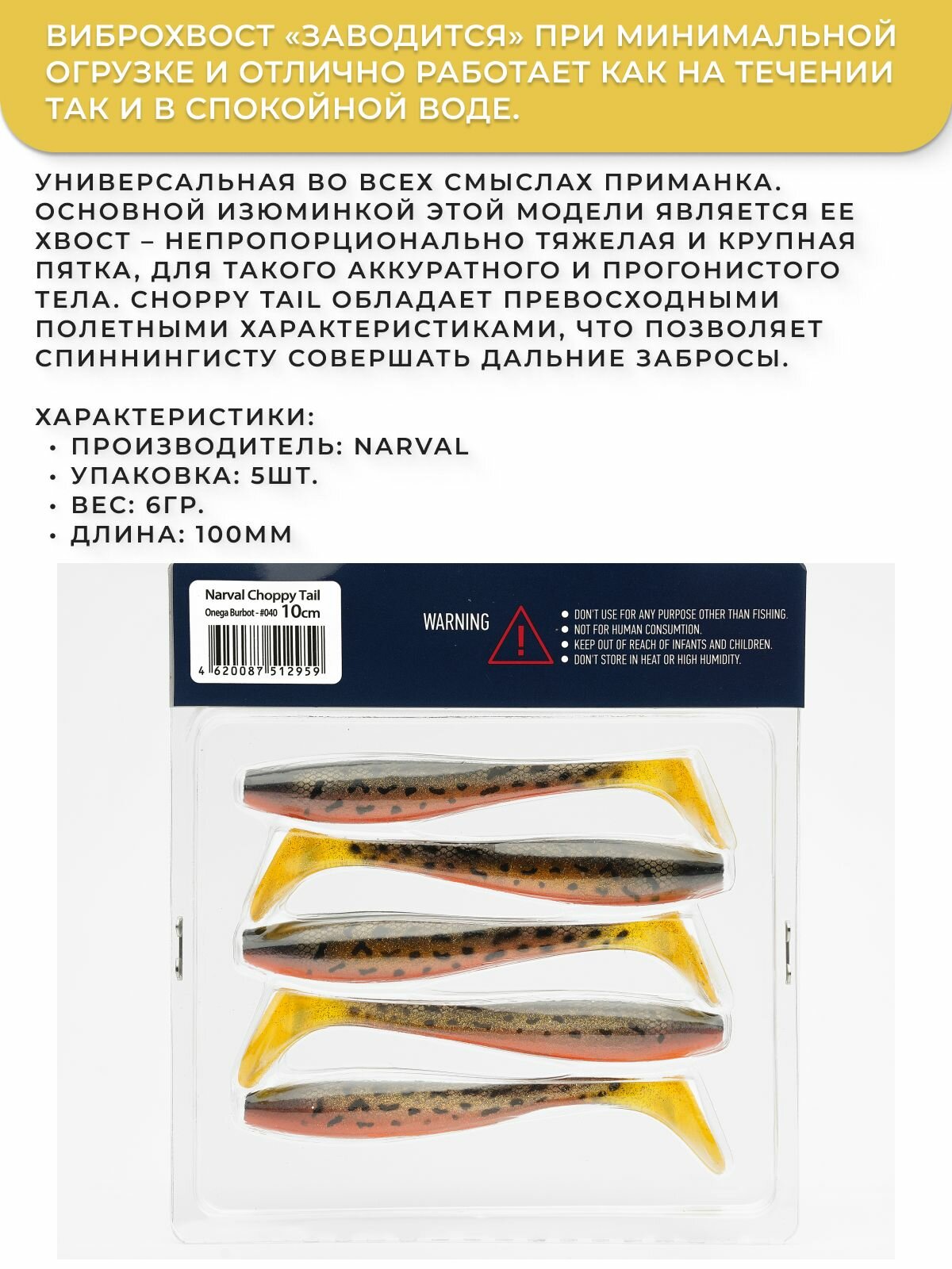 Ниже Вы можете прочитать отзывы на Приманка силиконовая Narval Choppy Tail 10cm #040-Onega Burbot / Мягкая приманка для джига, ознакомится с подробными характеристиками, посмотреть интересные обзоры и фотографии на Приманка силиконовая Narval Choppy Tail 10cm #040-Onega Burbot / Мягкая приманка для джига.