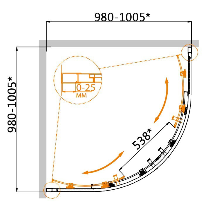 | Форма поддона | четверть круга |