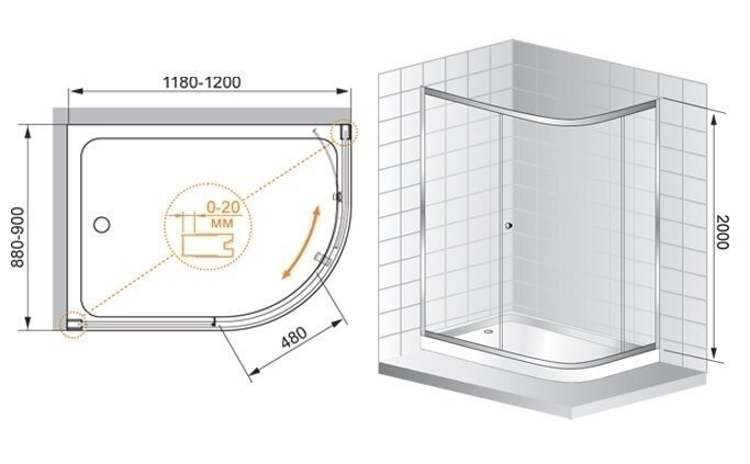 | Форма поддона | асимметричная |