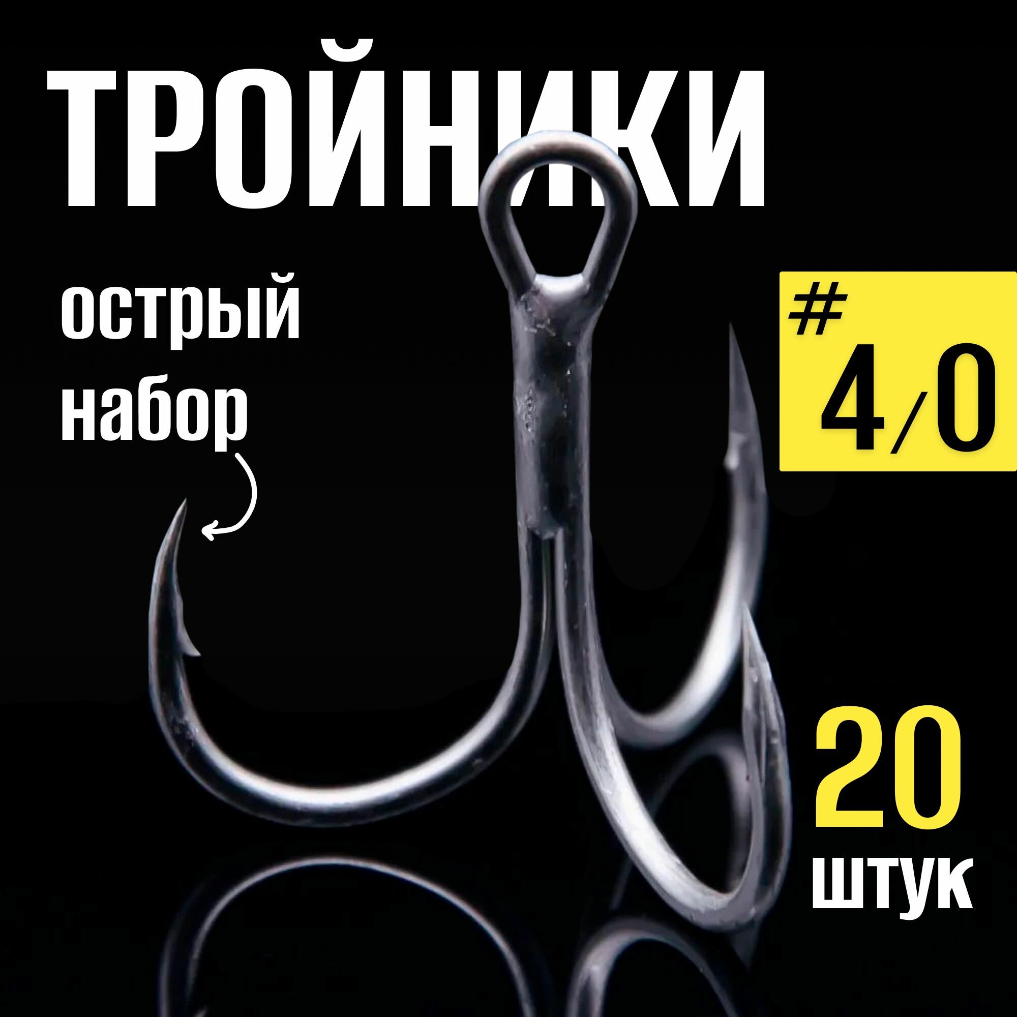 Купить Тройники для рыбалки № 4/0 набор 20 шт, крючки рыболовные в коробке