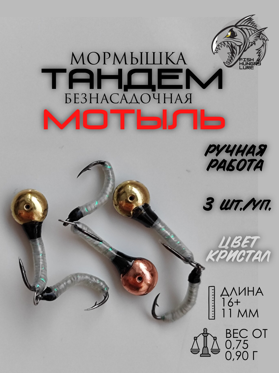 Купить FISH HUNGRY LURE Мормышка безнасадочная Тандем-мотыль кристалл 3 шт.