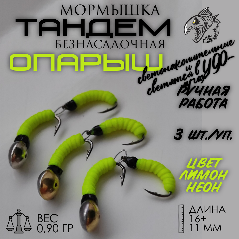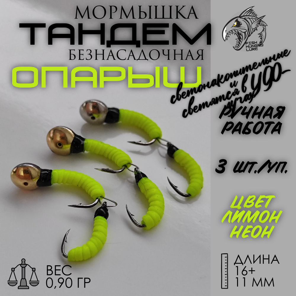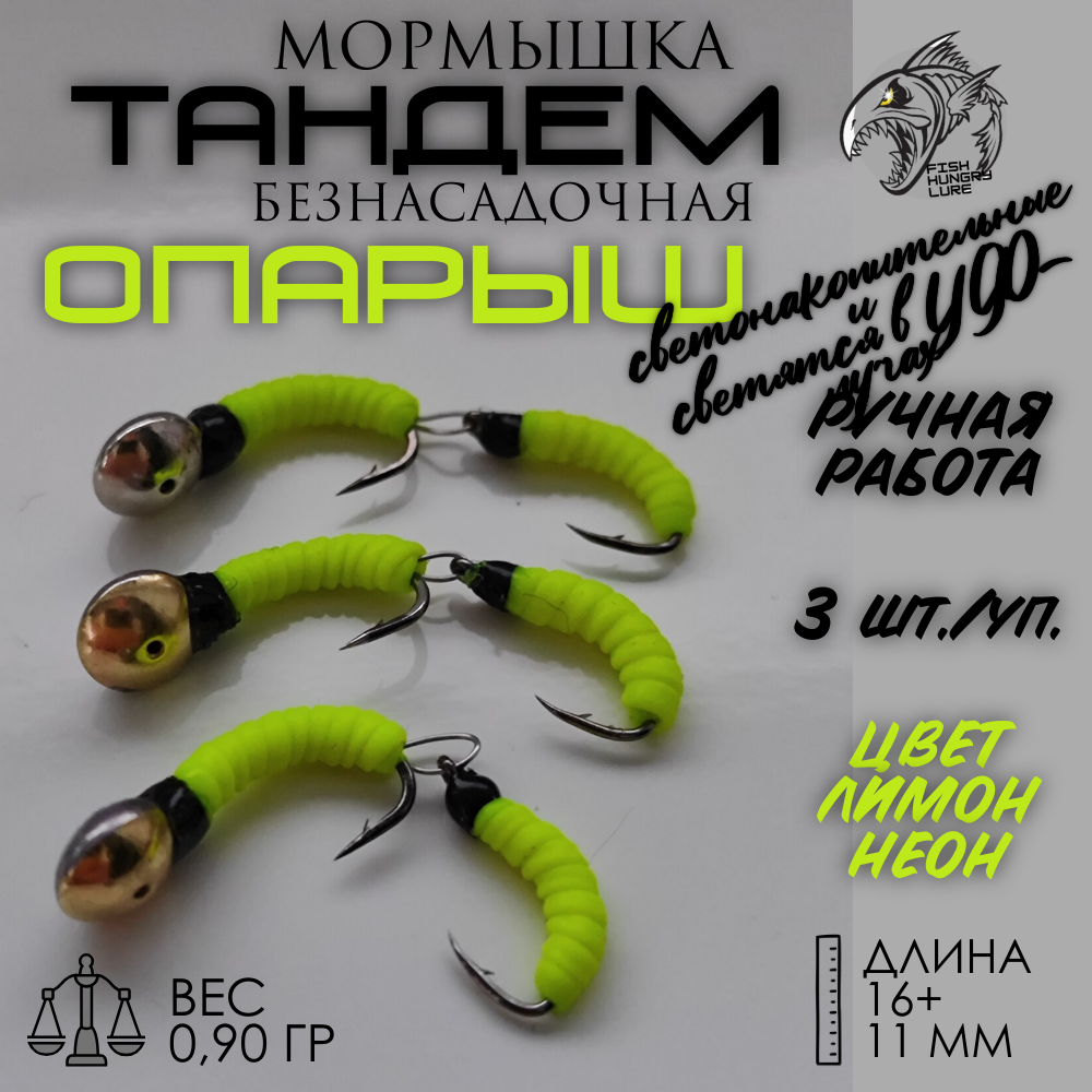 СохранитьFISH HUNGRY LURE Мормышка безнасадочная Тандем-опарыш лимон неон 3 шт. интересное:
