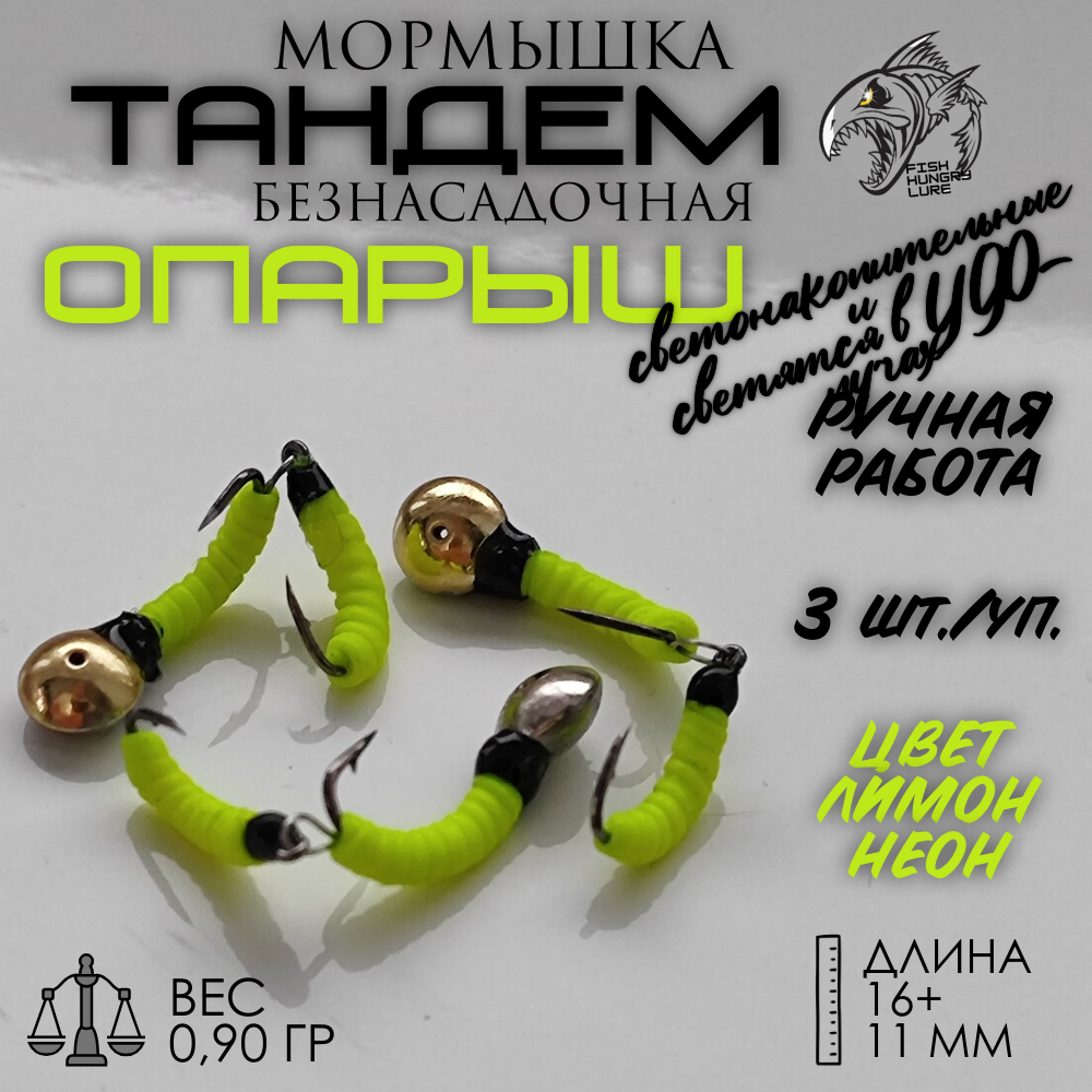 Купить FISH HUNGRY LURE Мормышка безнасадочная Тандем-опарыш лимон неон 3 шт.