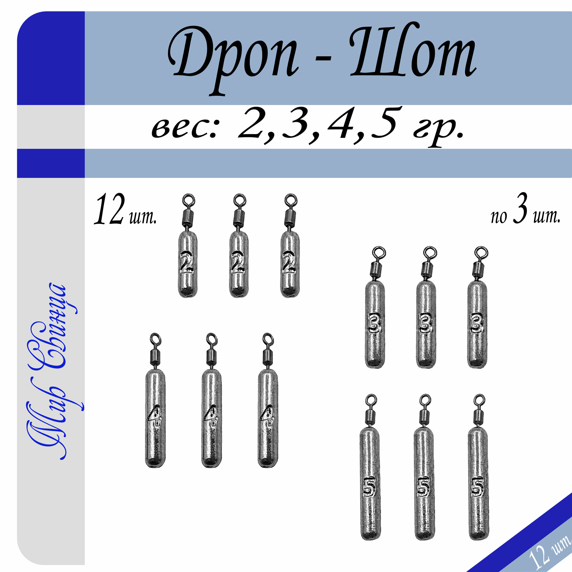 Купить Набор грузил Отводной поводок "Дроп-Шот" микро 2/3/4/5 гр. по 3 шт. (в уп. 12 шт.) Мир Свинца