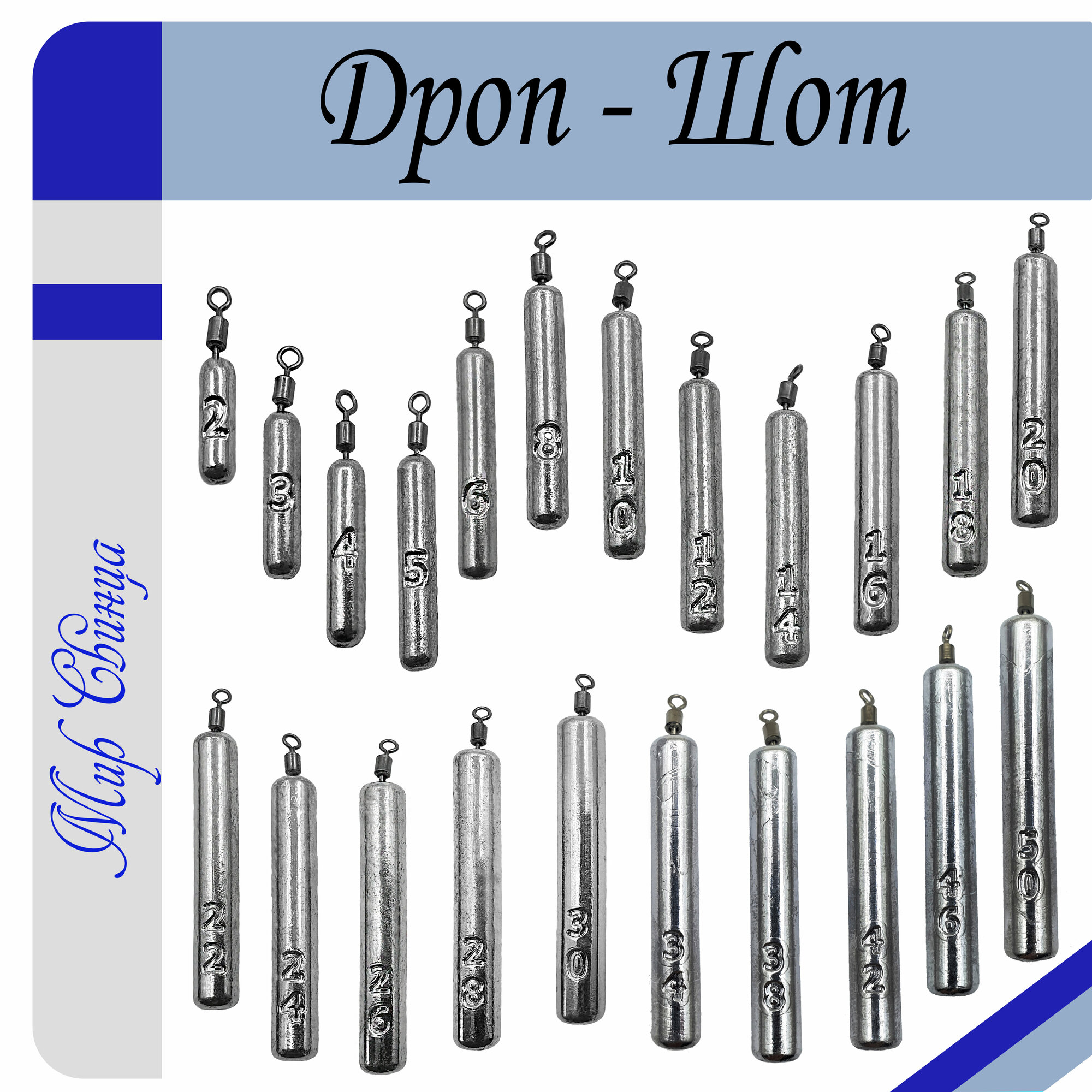 Набор грузил Отводной поводок "Дроп-Шот" 24/26 гр. по 5 шт. (в уп. 10 шт.) Мир Свинца