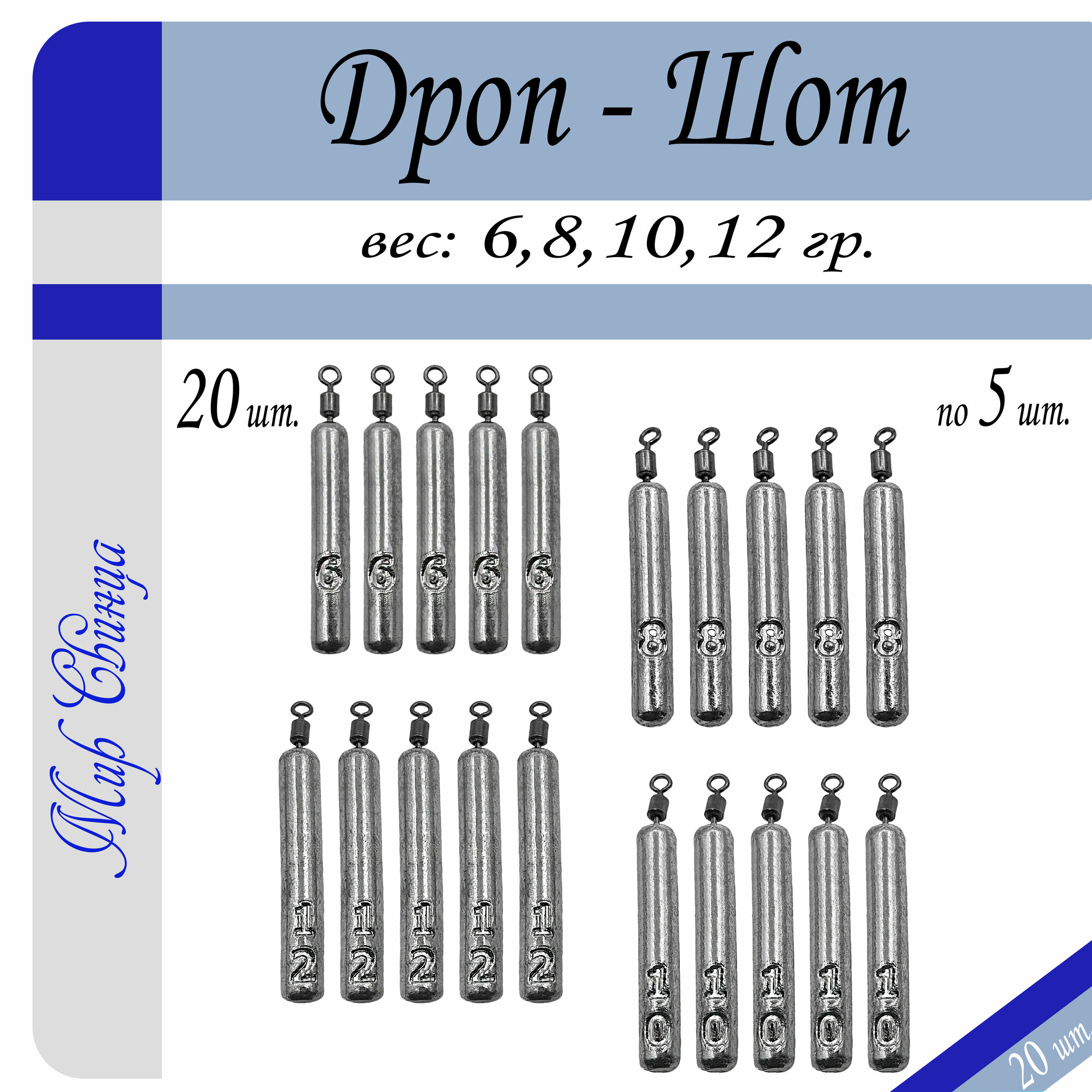 Купить Набор грузил Отводной поводок "Дроп-Шот" 6/8/10/12 гр. по 5 шт. (в уп. 20 шт.) Мир Свинца