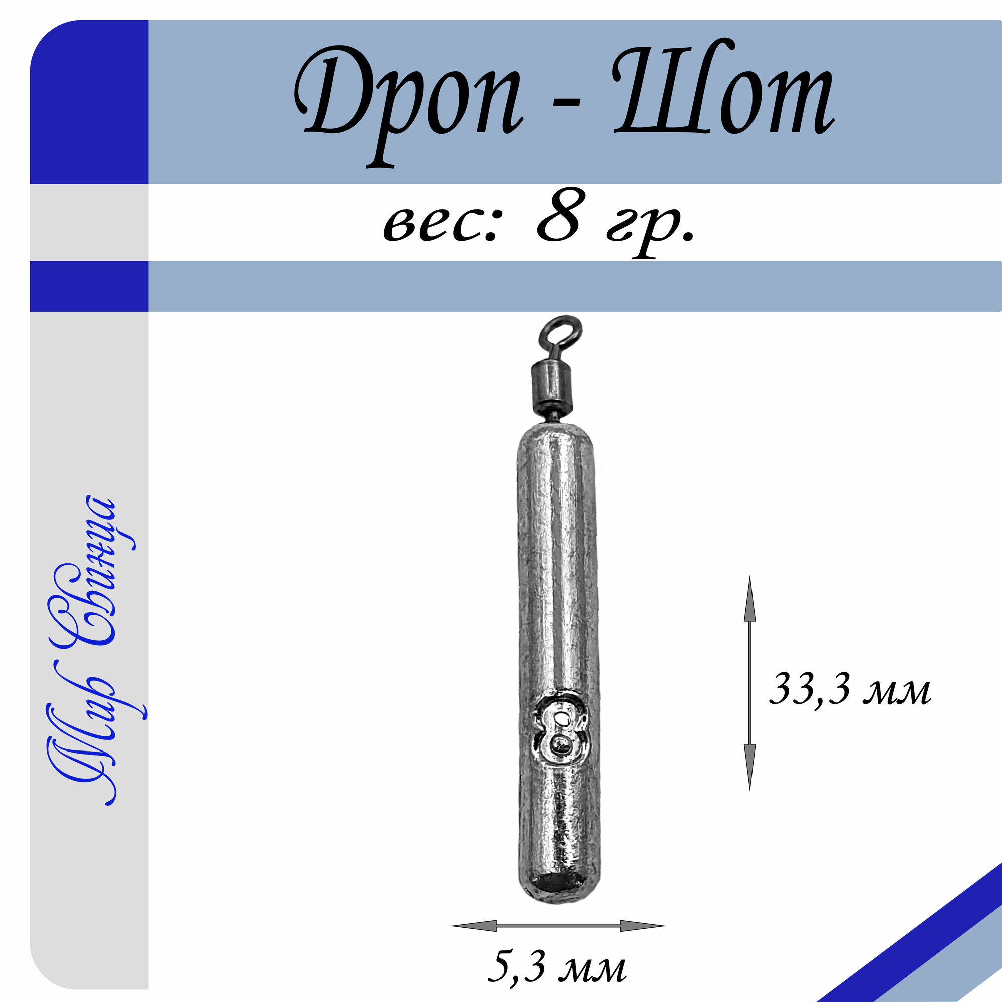 Набор грузил Отводной поводок "Дроп-Шот" 6/8 гр. по 5 шт. (в уп. 10 шт.) Мир Свинца