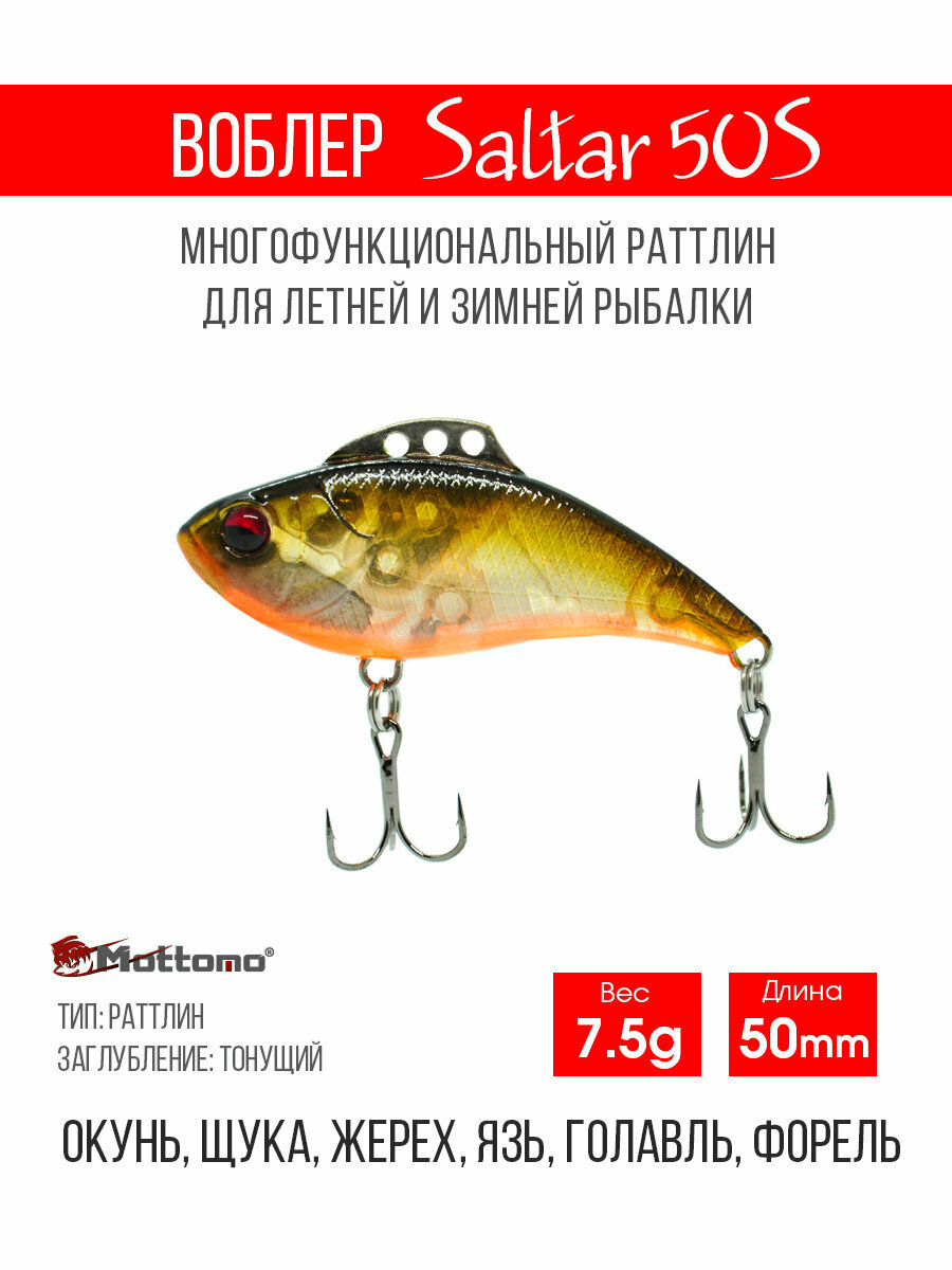 Воблер для рыбалки Mottomo Saltar 50S 7.5g , раттлин тонущий для спиннинга. Приманка на щуку, форель, судака, окуня