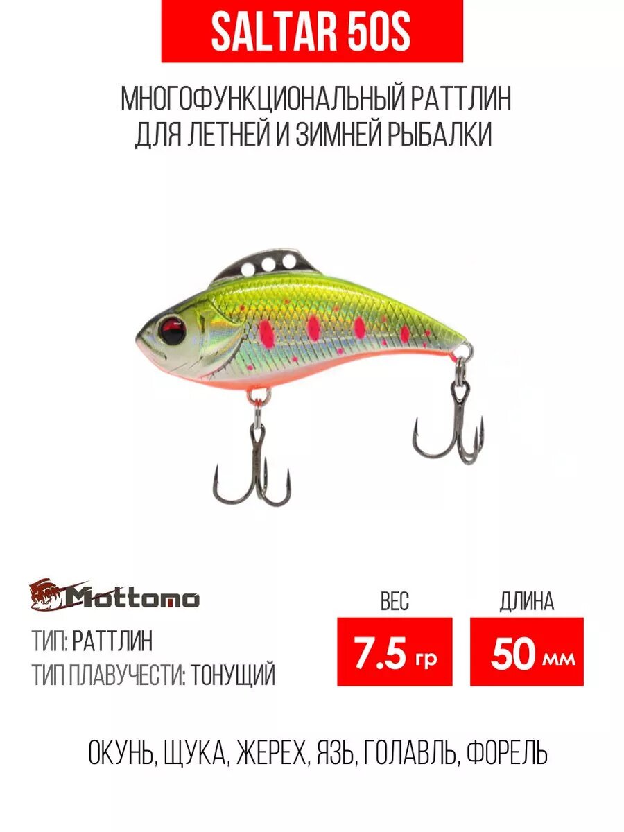 Ниже Вы можете прочитать отзывы на Воблер для рыбалки Mottomo Saltar 50S 7.5g приманка виб на щуку, ознакомится с подробными характеристиками, посмотреть интересные обзоры и фотографии на Воблер для рыбалки Mottomo Saltar 50S 7.5g приманка виб на щуку.