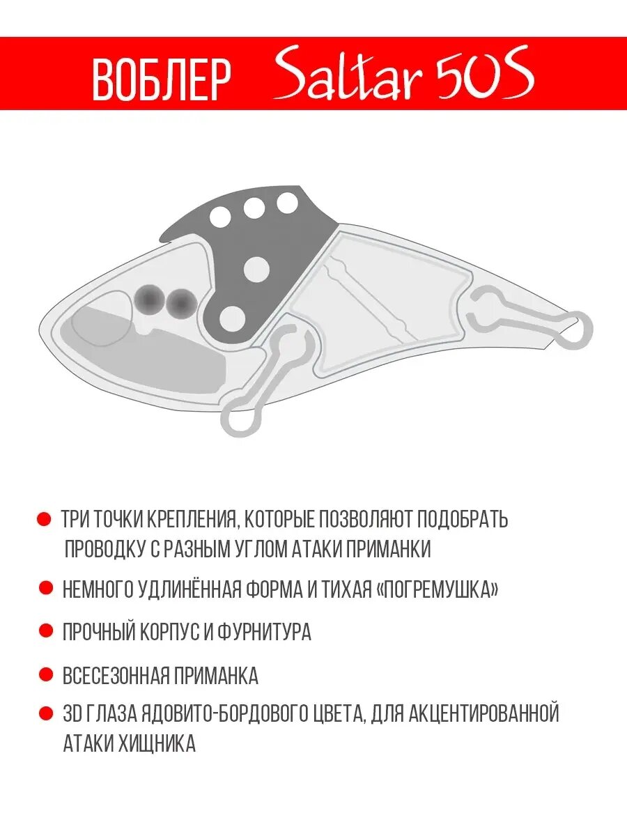 Воблер для рыбалки Mottomo Saltar 50S 7.5g , раттлин тонущий для спиннинга. Приманка на щуку, форель, судака, окуня