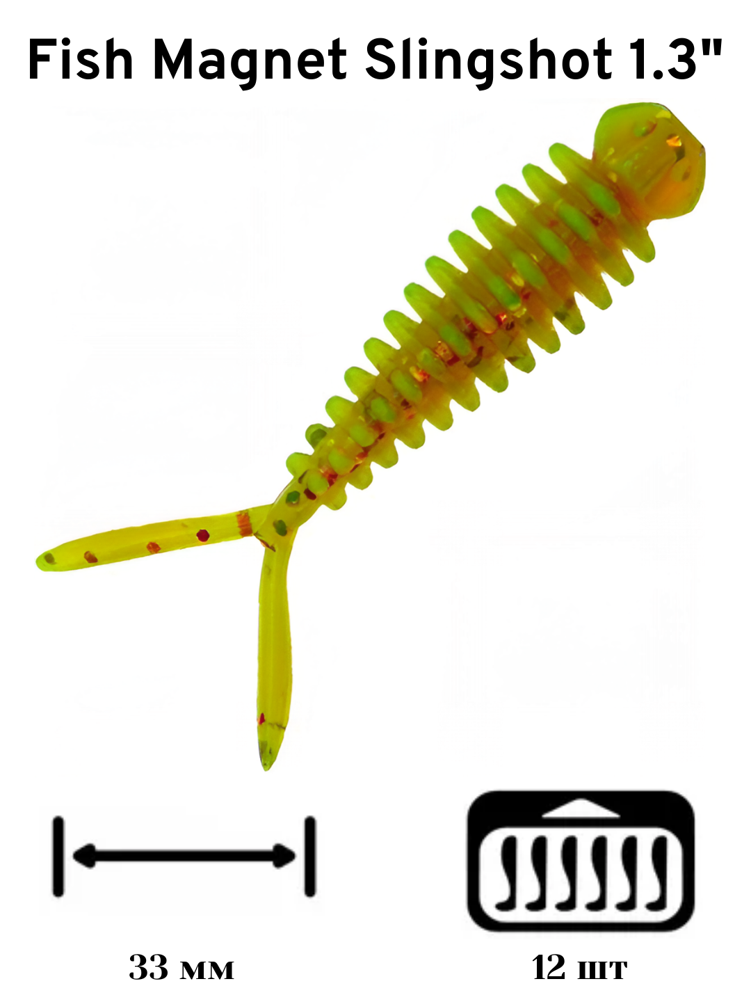 Силиконовая приманка мягкая съедобная Fish Magnet Slingshot 1.3" 33 мм 125 12 шт.