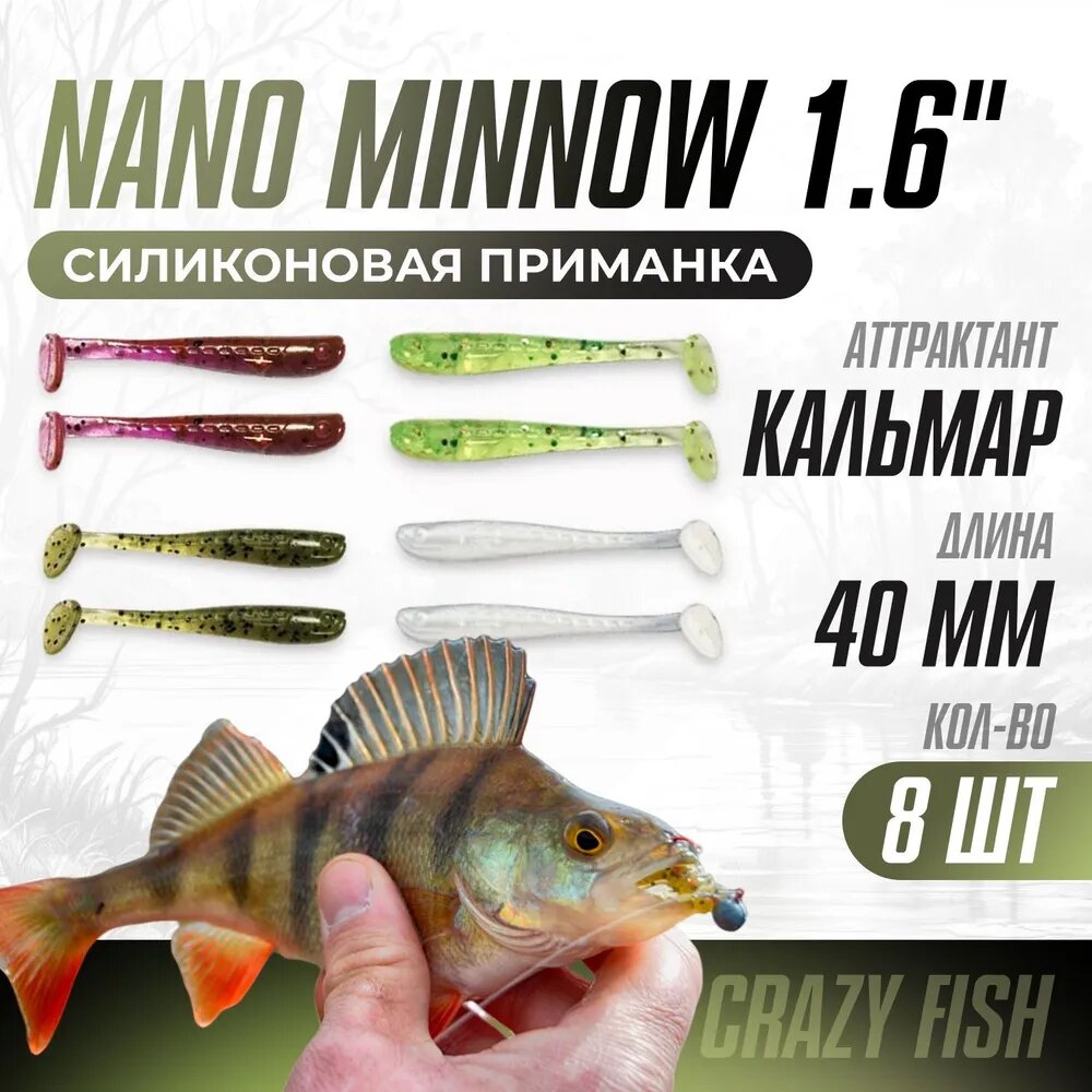 Купить Силиконовая приманка мягкая съедобная Crazy Fish Nano Minnow 1.6" 40.64 мм MIX 47 8 шт.
