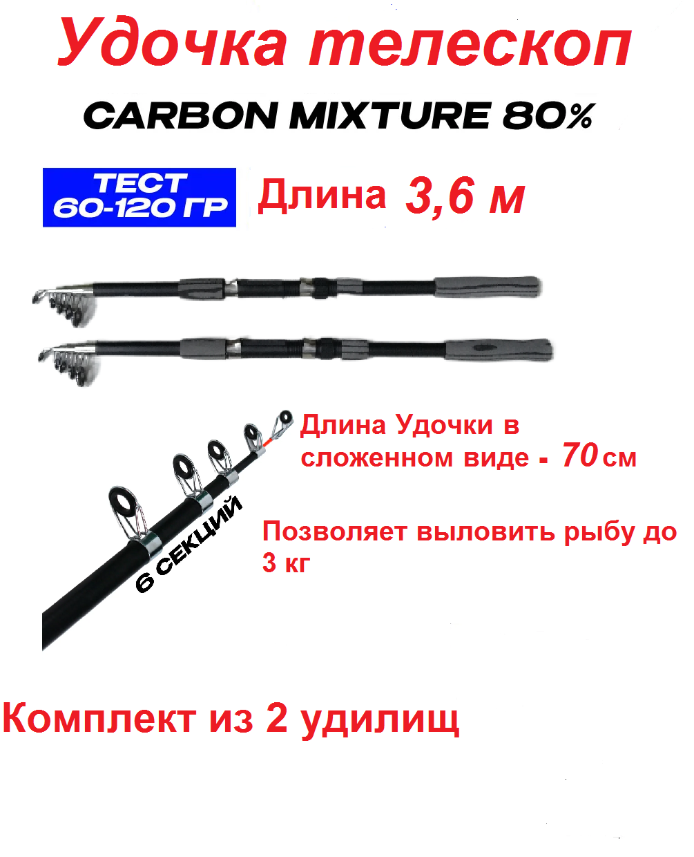 Комплект 2 Удочки- Телескопический Спиннинг 360 см можно использовать как закидущку интересное: