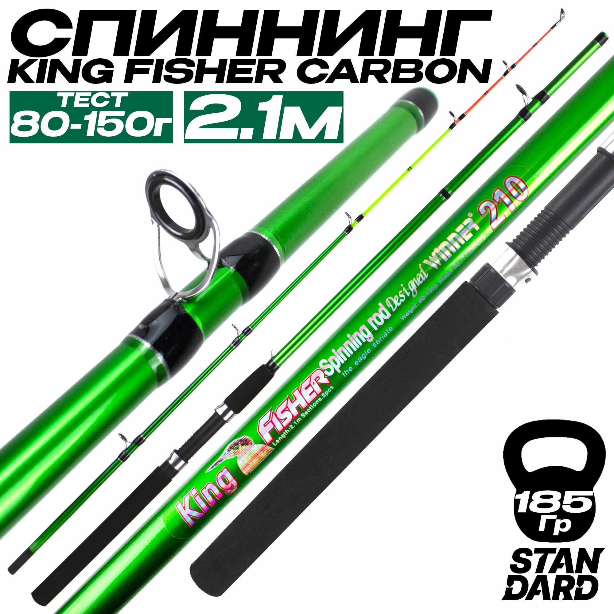 Спиннинг для рыбалки 210 см KING FISHER Тест: 80-150 г Быстрый строй интересное: