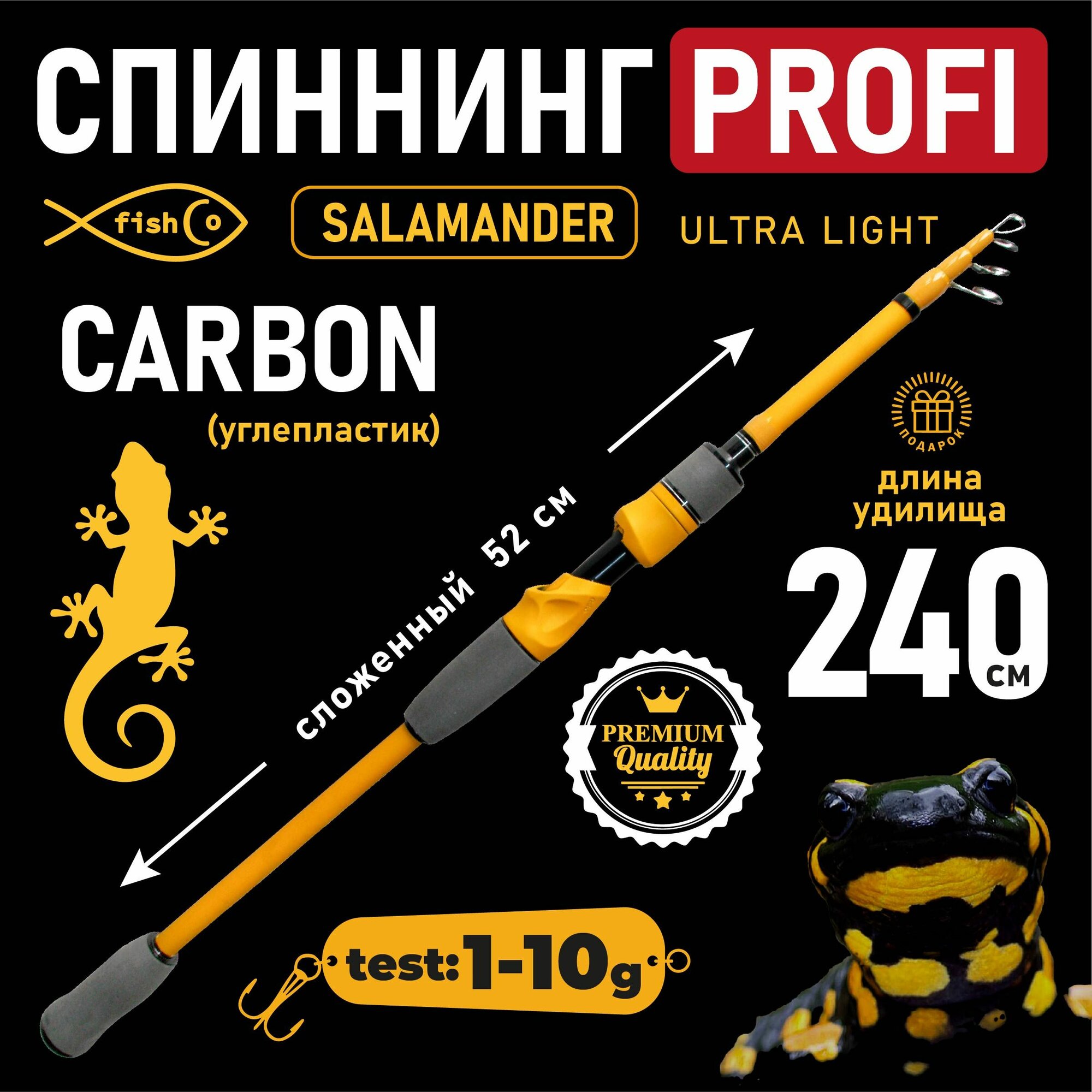 Спиннинг телескопический ультралайт карбоновый 1,8 м Salamander