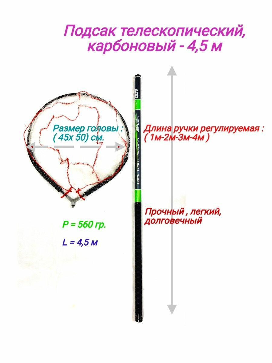 Подсак телескопический, очень легкий - 4,5 м интересное: