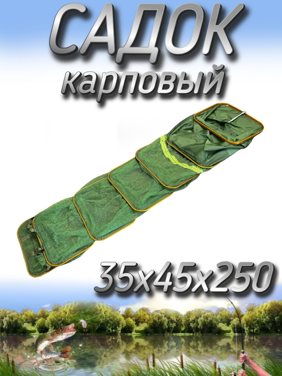 Садок рыболовный Komandor карповый, прорезиненный, 35x45x250 интересное: