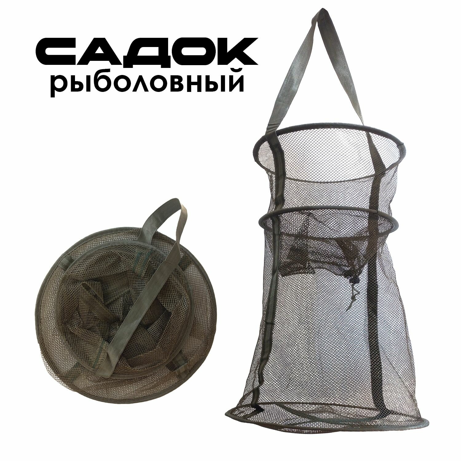 Садок рыболовный 45 см темно-зеленый большой интересное: