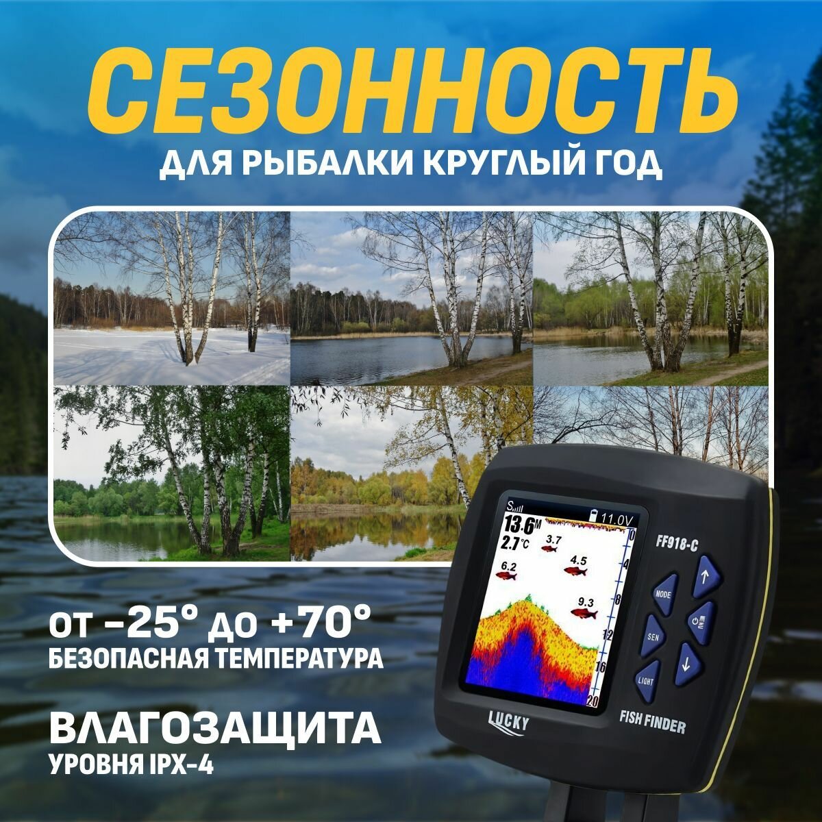 Эхолот Lucky FFCW1108-1 с датчиком-корабликом для зимней и летней рыбалки