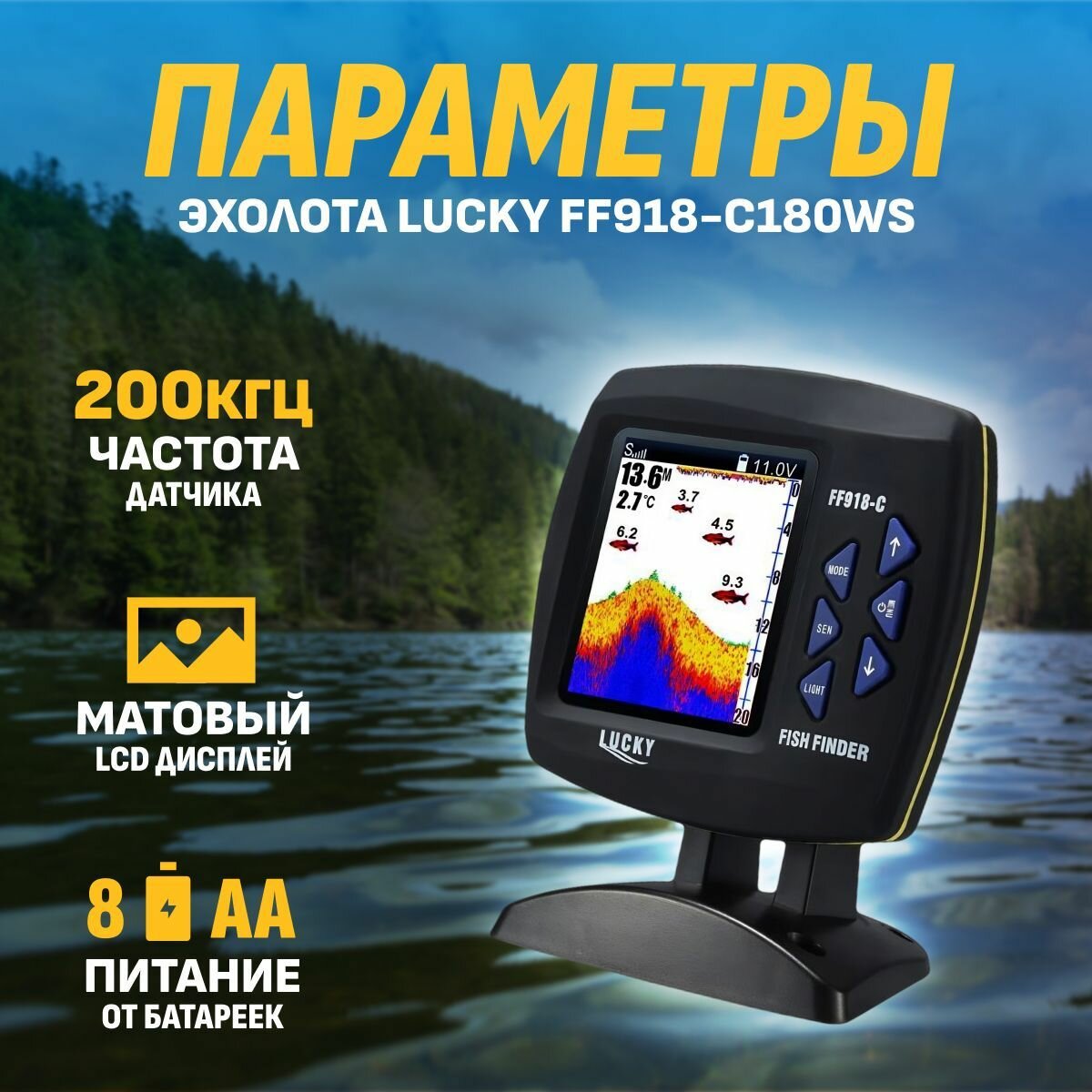 СохранитьЭхолот Lucky FF918-C180WS с двумя датчиками проводного и беспроводного типа действия интересное: