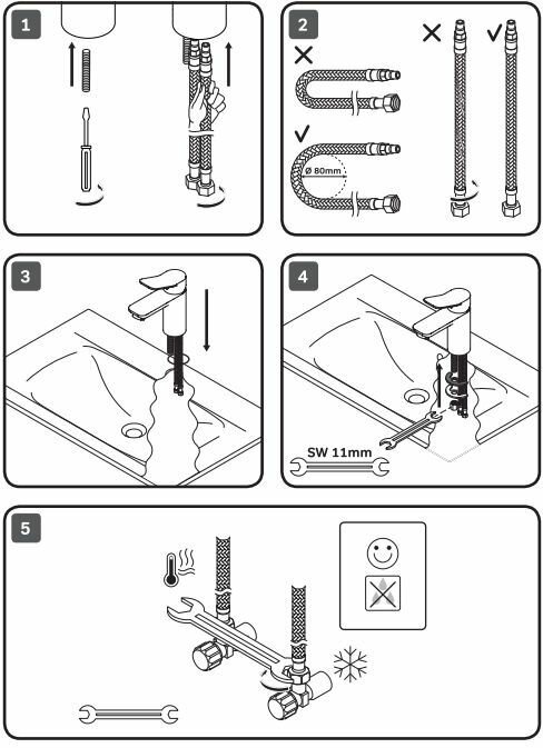 | Отзыв: | Стандартная гибкая подводка, как у большинства смесителей - подключается быстро, без переходников, затягивается так, что смесак с места не сдвинешь. Низкий наклонный излив, широкий напор не дает, пока даже дети не облили ни себя, ни пол. Про покрытие ничего плохого не скажу - известь не въедается, четный пятен нет. |