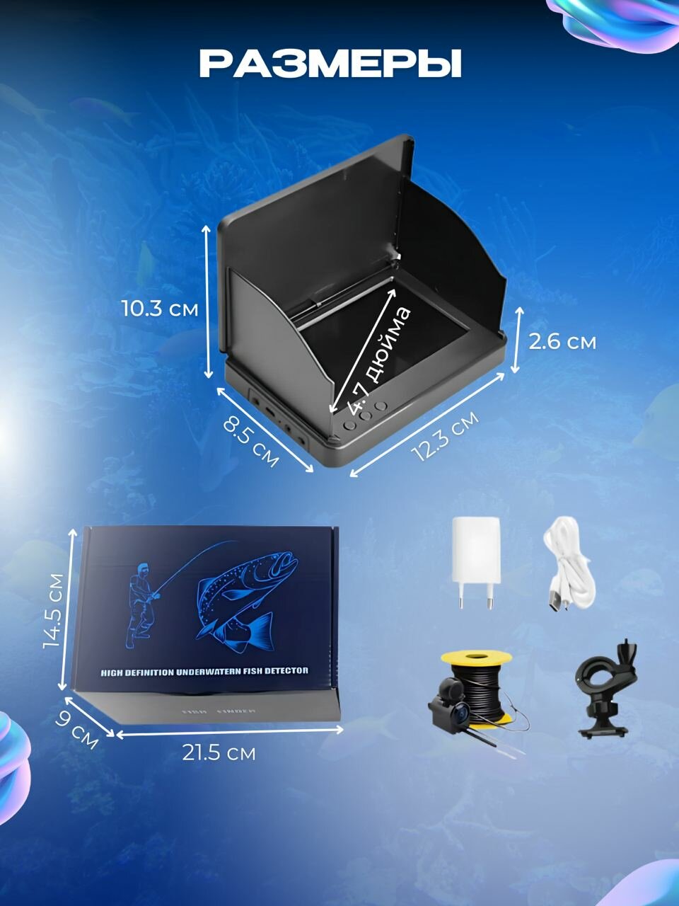 Визуальный эхолот аккумуляторный / Подводная камера для рыбалки 4,3-дюймовым ЖК-экраном интересное: