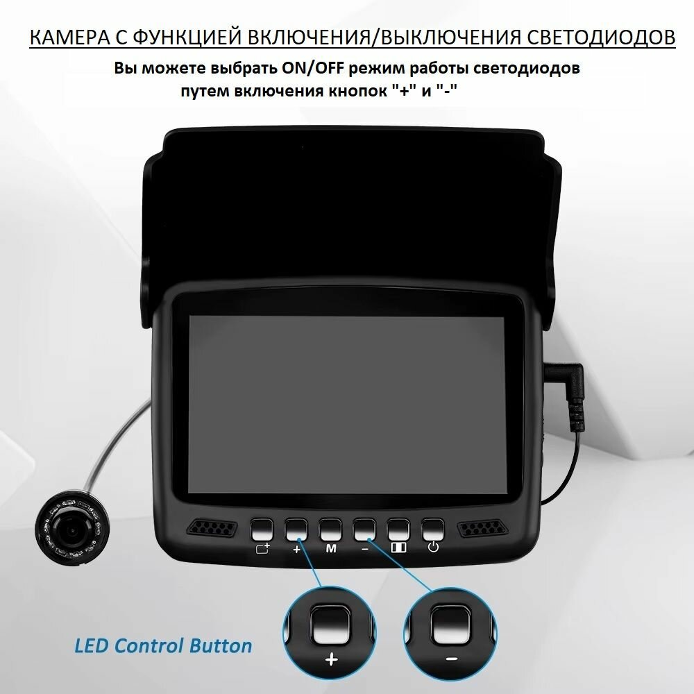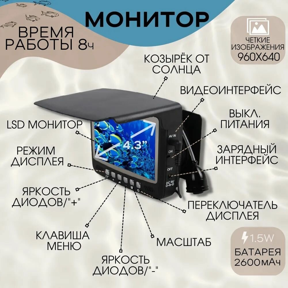 Камера для рыбалки, с козырьком, ИК-подсветка, кабель 20 м, аккумулятор 2600мАч, монитор 4,3"