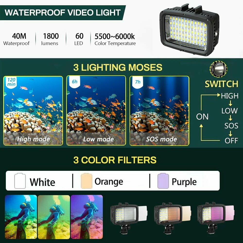 Seafrogs SL 101 Водонепроницаемая вспышка для подводной съемки, SL-101 интересное:
