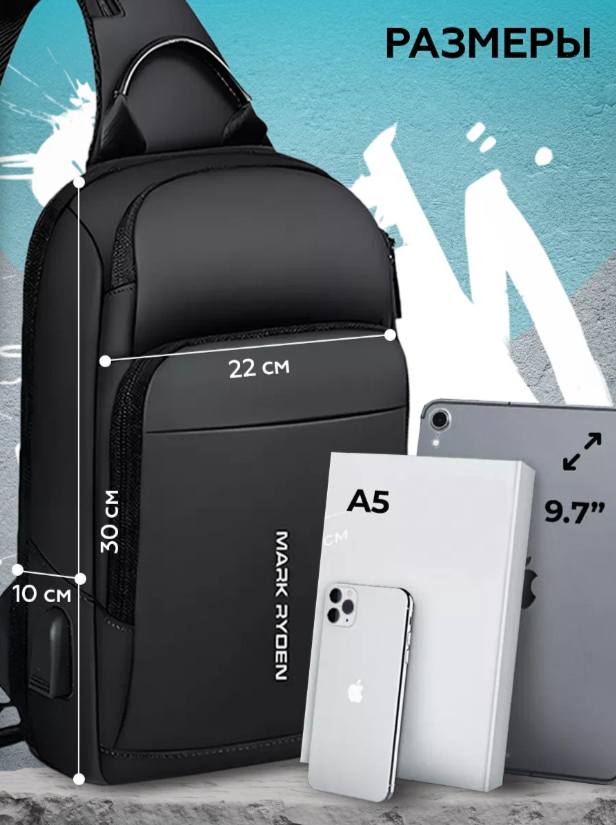 Рюкзак городской с одним ремнем Mark Ryden Mini X-Ray MR7069, 9 литров, водонепроницаемый, с USB