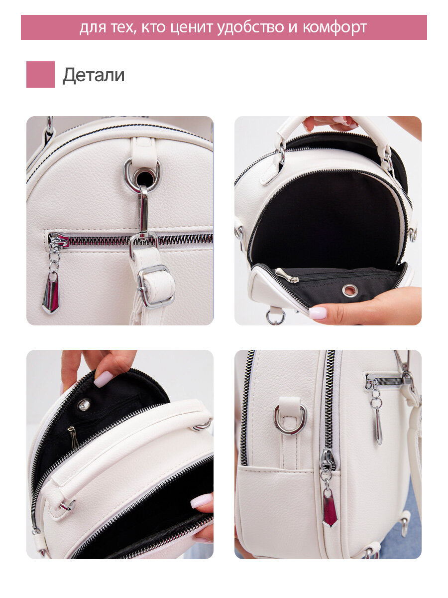 Рюкзак женский городской стильный маленький, сумка на плечо, трансформер 2в1, экокожа, белый интересное: