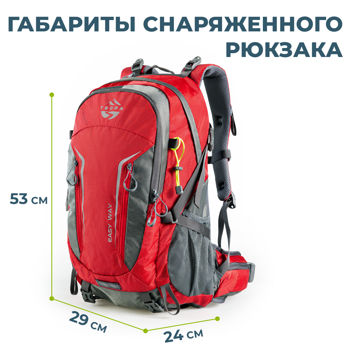 Рюкзак туристический мультиспортивный с каркасом TROPA Easy way 35, красный интересное: