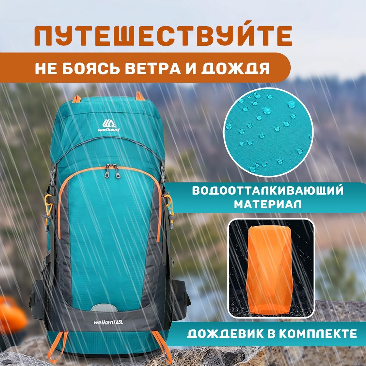 Купить Рюкзак туристический 65л, для похода и города, голубой
