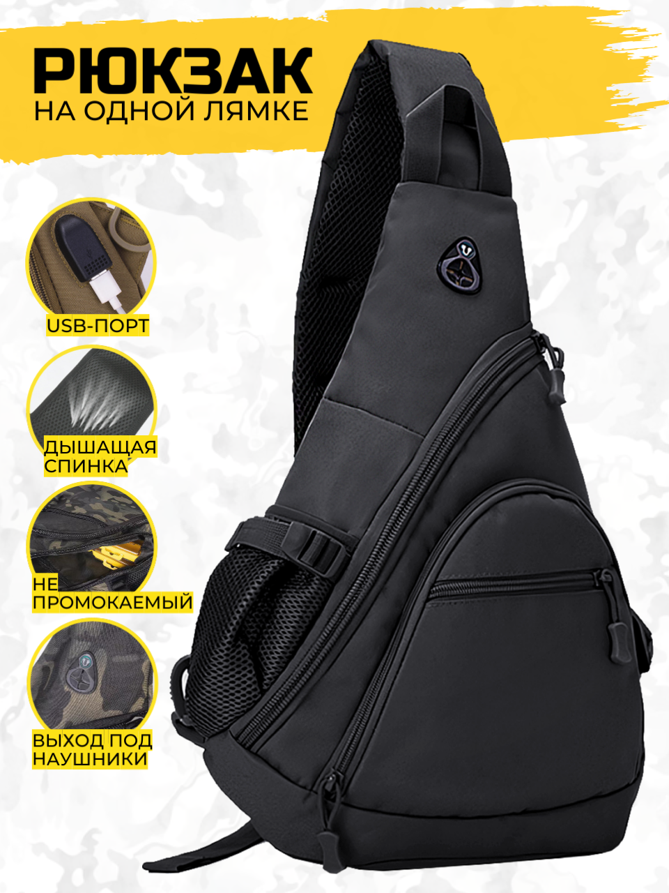 Рюкзак мужской на одной лямке камуфляж;