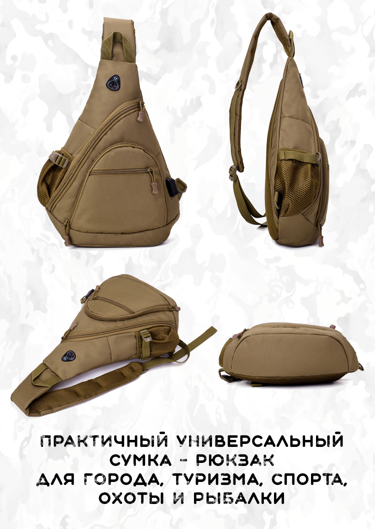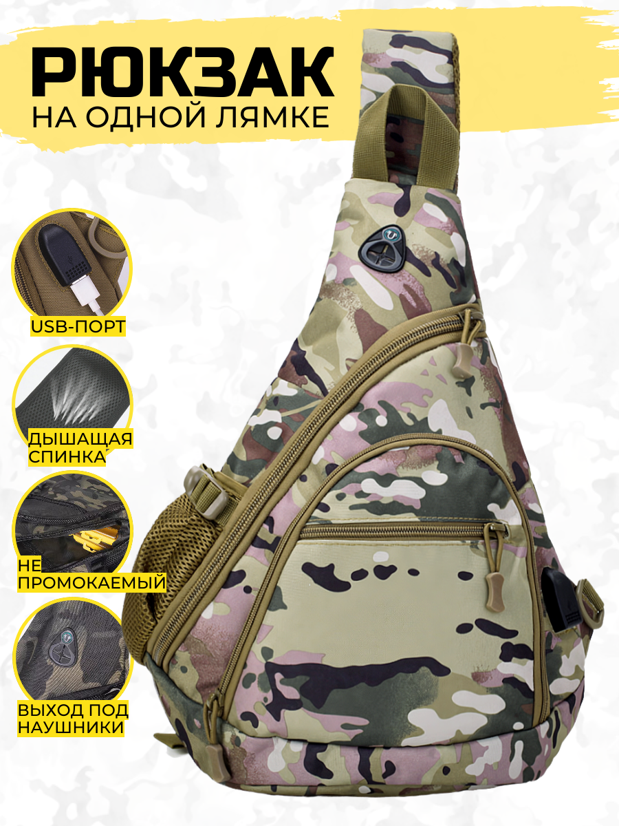 Рюкзак мужской на одной лямке камуфляж; интересное: