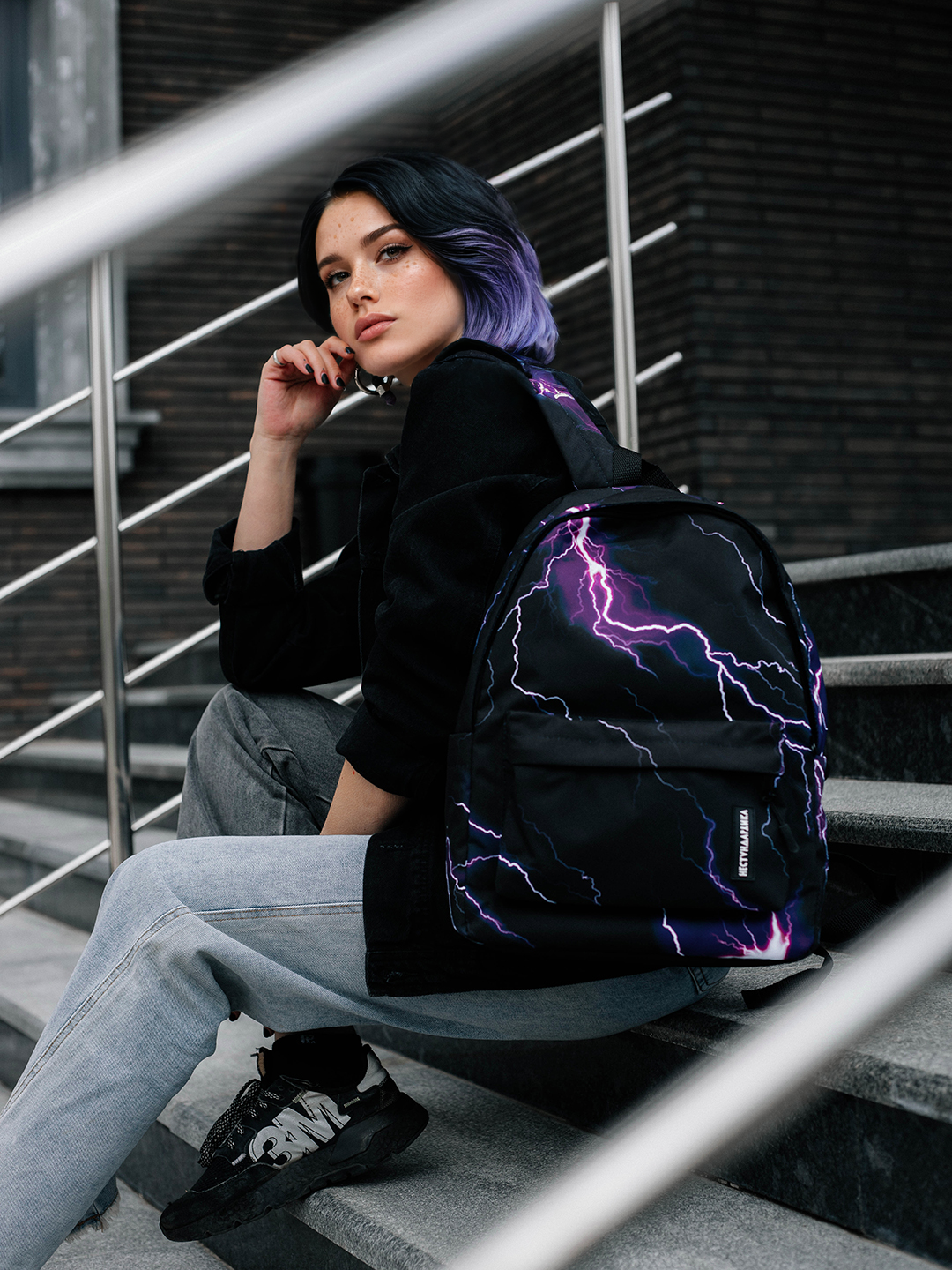 СохранитьРюкзак городской с принтом Молния фиолетовая интересное: