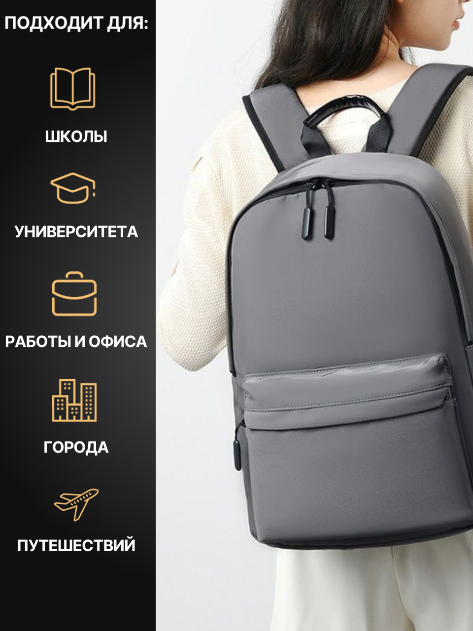 Рюкзак городской из водоотталкивающей ткани 01232902, 31х16х43, серый интересное: