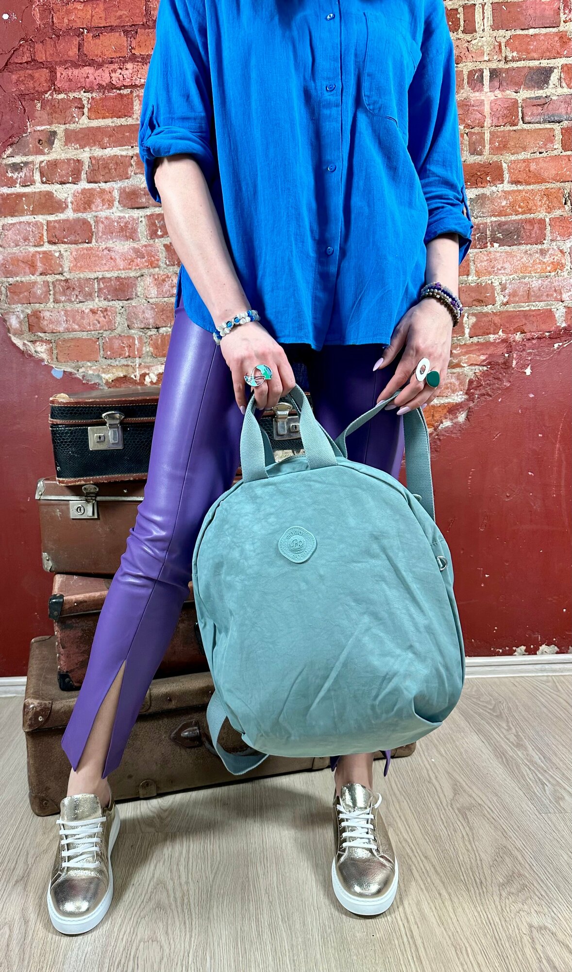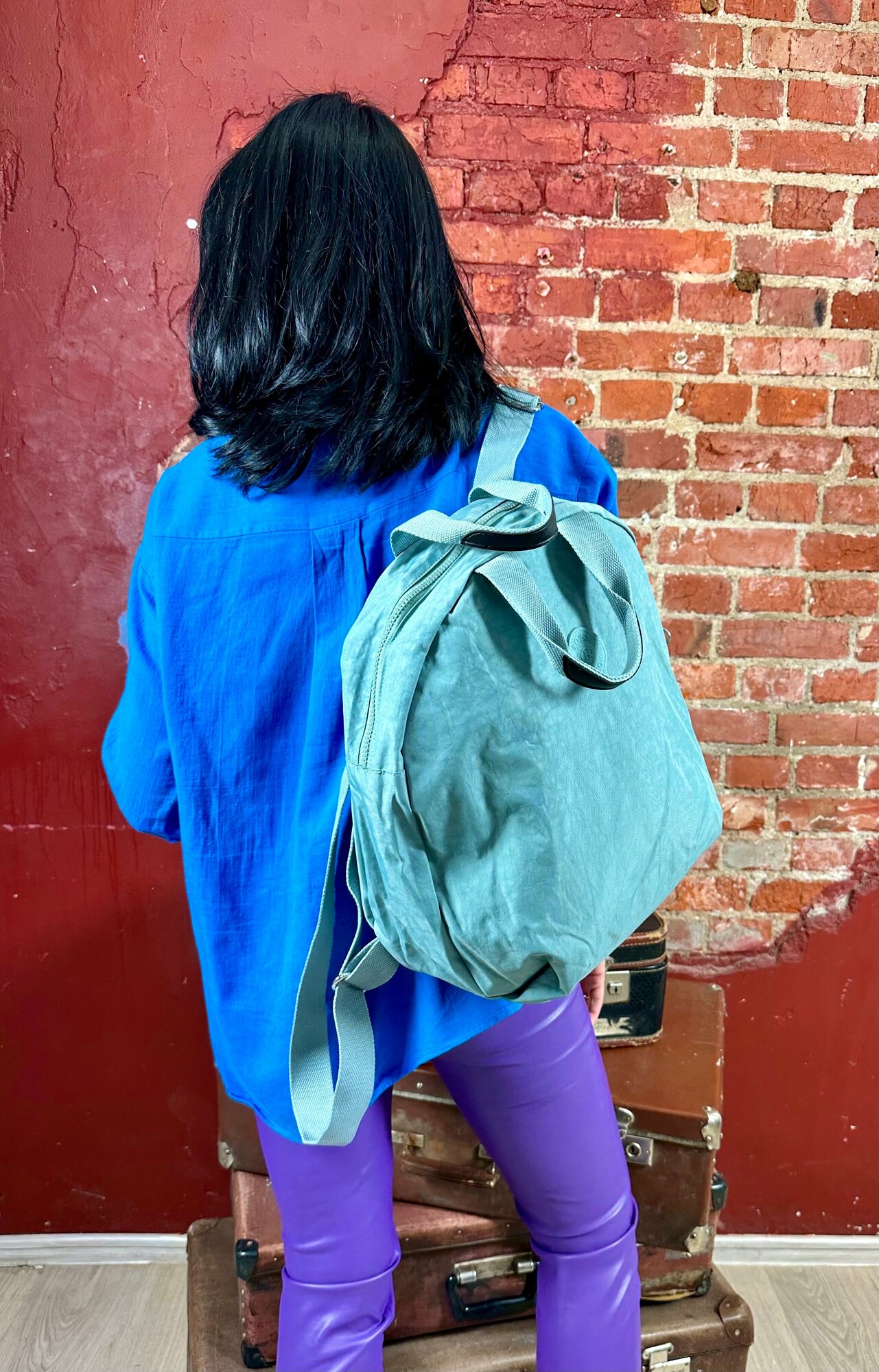 Текстильный стильный рюкзак бледно-зеленый