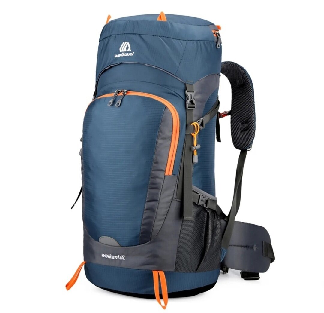 Большой трекинговый рюкзак Weikani для путешествий, походов, кемпинга 65 литров с дождевиком цвет синий интересное: