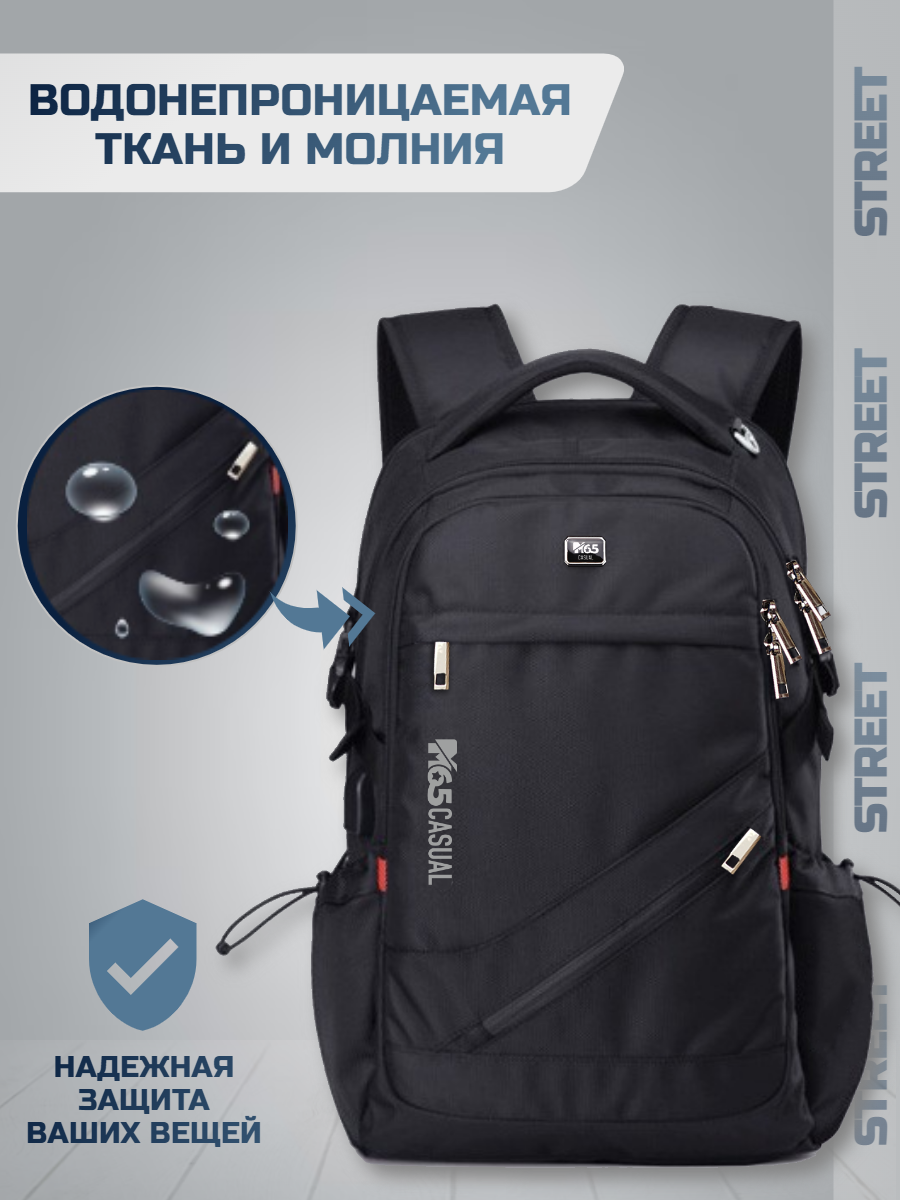 Рюкзак мужской городской дорожный большой 35л для ноутбука 15.6 Kingsons KS3140W 15" Черный водонепроницаемый с USB для взрослых и подростков