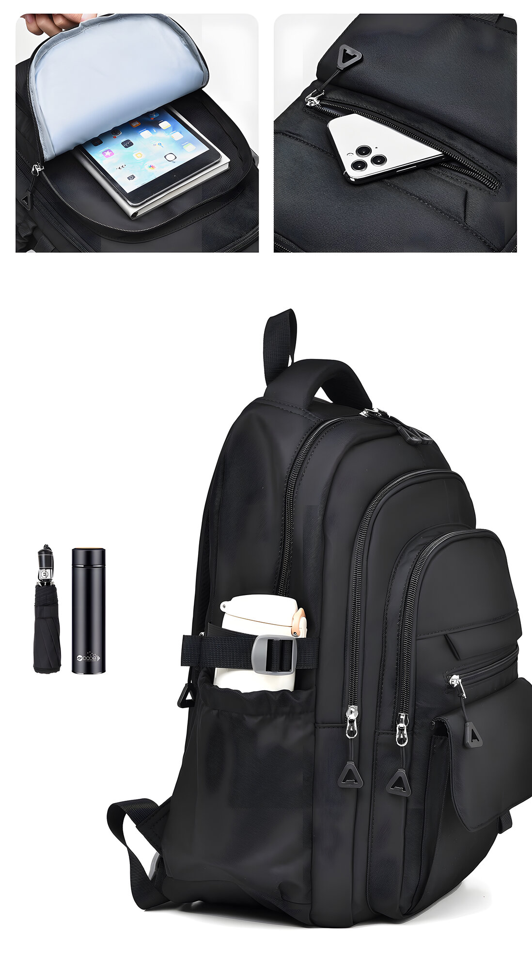 Рюкзак из полиэстера, водонепроницаемый, износостойкий, цвет черный