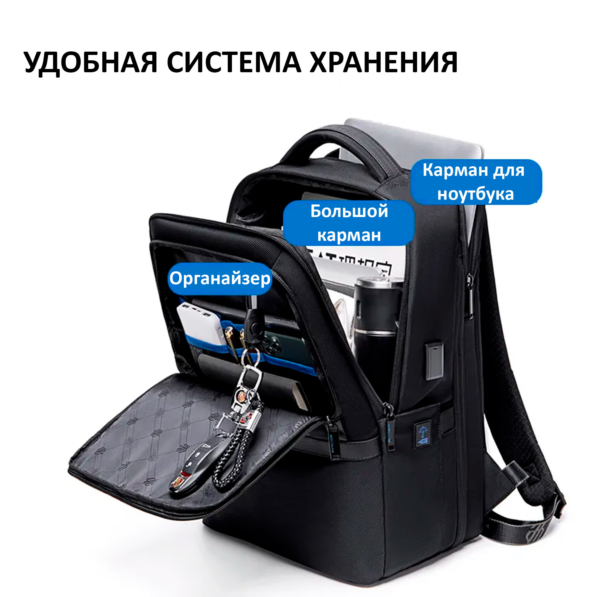 Рюкзак мужской городской дорожный большой 35л для ноутбука 15.6 Kingsons KS3140W 15" Черный водонепроницаемый с USB для взрослых и подростков