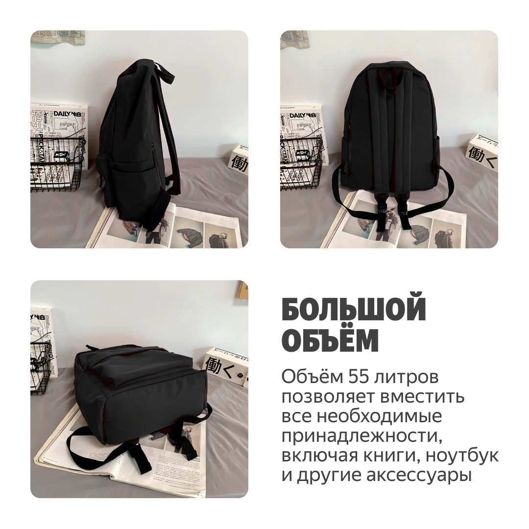 Текстильный рюкзак с двумя лямками, вместимость до 55 л, отделение для ноутбука 16", черный интересное: