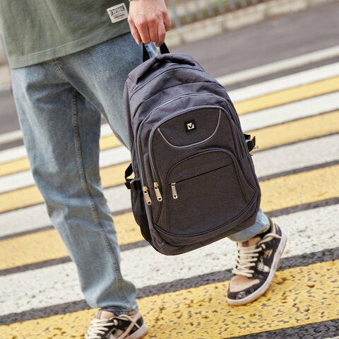 Рюкзак женский мужской, школьный спортивный городской, для подростка темно-серый, 3 отделения, 46х31х18 см, Brauberg High School, 270759